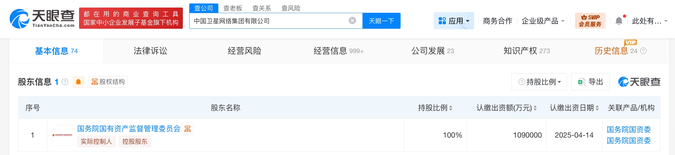 每经AI快讯,天眼查App显示,近日,中国卫星(600118)网络集团有限公司发生工商变更,注册资本由100亿元人民币增至109亿元人民币,增幅9%;同时,部分高管也发生变更。该公司成立于2021年4月,法定代表人为苟坪,经营范围含卫星互联网的论证设计、研究试验、工程设计、工程建设,卫星互联网发射和测控服务,基础电信业务,信息服务,卫星通信、广播、导航、遥感业务及综合服务等。股东信息显示,该公司由国务院国有资产监督管理委员会全资持股。